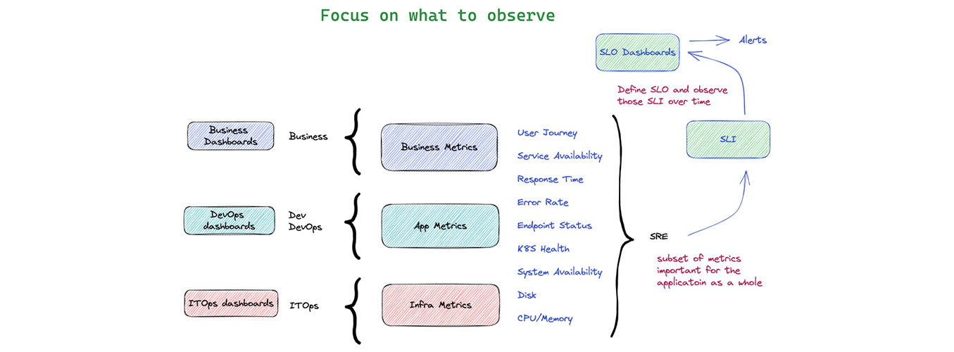 This is part 1 of the 3 part series "The path to your first SLO". When talking about building an observability practice, many customers we talked to struggled on what to observe and usually frustrated with the alarm storms or false alarms. ITOps are concerned about centralized monitoring and gather metrics from different systems for proactive monitoring.